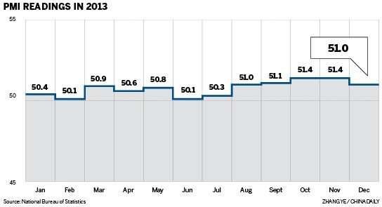 The December manufacturing Purchasing Managers' Index retreated to 51 from 51.4 in November, the lowest level since August, indicating weaker economic growth momentum amid moderate external demand and entrepreneurs' cautious expectations.