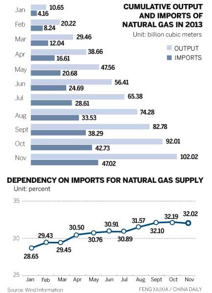The nation's reliance on overseas gas exceeded 30 percent for the first time last year, according to a report released by CNPC Economics and Technology Research Institute on Wednesday.