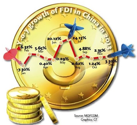 2014-01-17China‘s FDI inflow rises 2.35 pct in November