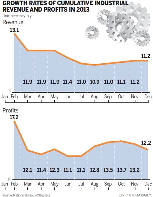 Profits from industrial companies' principal business in 2013 increased 4 percent year-on-year, according to the NBS.