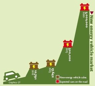 But output and sales were still not sufficient to make the country meet its target to produce and sell 500,000 new energy vehicles by 2015 and 5 million by 2020.