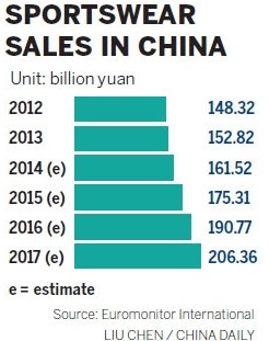 "Homogeneity is in the products and the business model. Some of the sportswear makers are very capable of copying popular designs because they have a strong background in manufacturing," he said. "But the consumers now are seeking experience, which makes the business more complicated. We believe Chinese consumers will demand more functional products because more people are taking part in all kinds of sports."