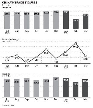 2014-04-11China‘s March trade worse than expected