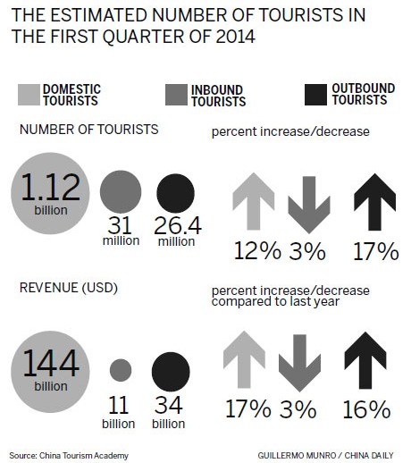 The report said that revenue from inbound tourism in the quarter was estimated at $11 billion, a drop of 3 percent from the same period in 2013.