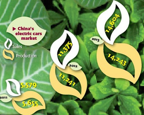 The China Association of Automobiles Manufacturers (CAAM) said in January that in 2013 China produced 14,243 electric cars and sold 14,604 units, which analysts said was mainly driven by the central government's subsidy policy for new energy cars.