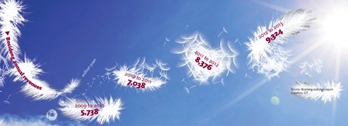 According to Bosideng's interim report, the down apparel business accounted for 62.5 percent of the total revenue during the six months ending September 30, 2013, hitting 1.76 billion yuan ($267.7 million), down 4.7 percent year-on-year.