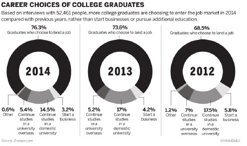 The number of college graduates will reach a record 7.27 million this year, up from 6.99 million in 2013, according to the Ministry of Education. By the end of February, 60 percent of the job seekers had clinched at least one offer while the rest were still hunting for work, according to Zhaopin.com.