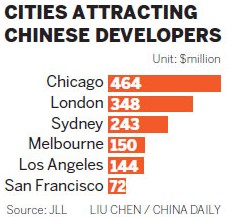 While Chinese outbound investment in real estate continues to be spread across the globe, most of the deals in the past quarter still took place in larger, gateway cities such as London, Sydney, Los Angeles and Chicago, according to JLL.
