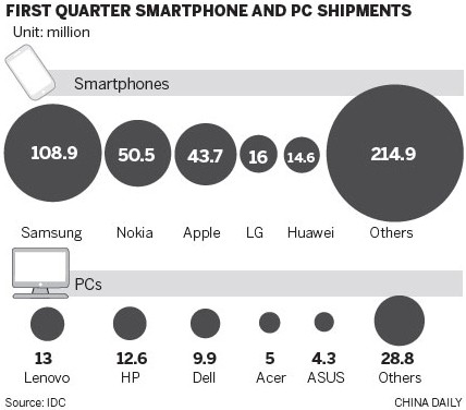 It shipped more than 16 million tablets in the first quarter, compared with 2.1 million shipments by Lenovo, according to research firm International Data Corp.