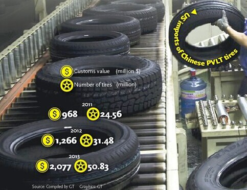 According to the filing, China exported PVLT tires worth $2 billion to the US in 2013, with 64 percent year-on-year growth.