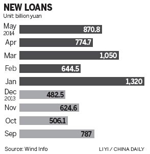 The central bank figures also showed that aggregate financing was 1.4 trillion yuan in May, compared with 1.55 trillion yuan the month before.
