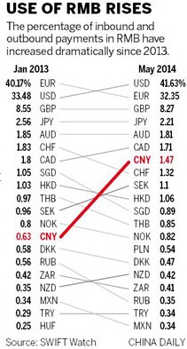 As of May, South Korea had $11.3 billion worth of yuan deposits, up by 70 percent from the start of the year, making the yuan the second-largest foreign currency deposit in the country after the US dollar.