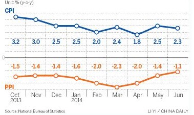 The improving PPI data were in line with the robust performance of the manufacturing sector on the back of the mini-stimulus measures announced by the central government. The Purchasing Managers Index in June, a gauge of manufacturing activities, rose to the highest level this year, according to government and private sector statistics.