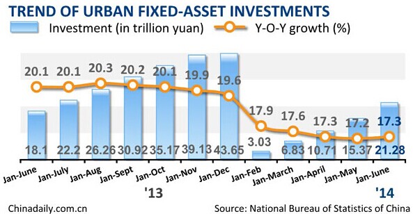 China's fixed asset investment grew 17.3 percent year on year in the first six months this year, the National Bureau of Statistics (NBS) announced on Wednesday.