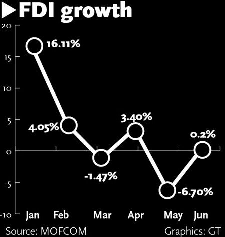 China's FDI inflows from the US, the European Union, Japan and Southeast Asian countries all recorded year-on-year drop in the first half, with that from Japan plummeting most by 48.8 percent, while FDI from the UK surged by 76.4 percent and FDI from South Korea rose by 45.6 percent, according to the ministry.