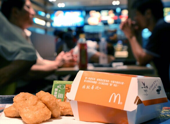 Chicken nuggets are sold at a McDonald's restaurant in Beijing on Monday. Some products are no longer for sale in Shanghai after Shanghai Husi Food Co Ltd, a subsidiary of the Chicago-based OSI Group, was exposed in a media report as supplying fast food restaurants with expired chicken and beef. [Photo/China Daily]