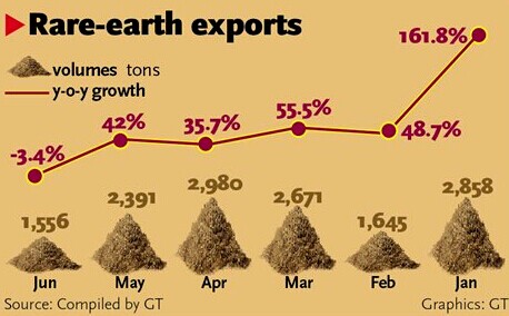 Coupled with strong growth in the domestic market, exports of rare-earth metals have also expanded rapidly.