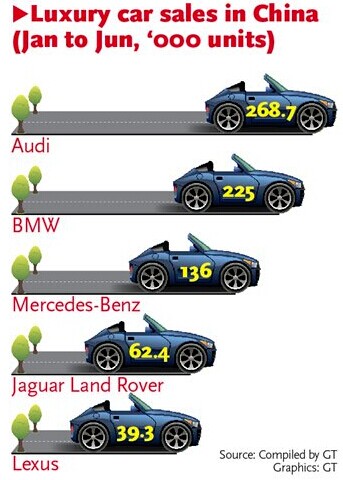 But Audi still led China's luxury auto market in the first half of 2014, selling 268,666 vehicles, exceeding the sales of BMW by 43,666 cars over the same period, Reuters said.