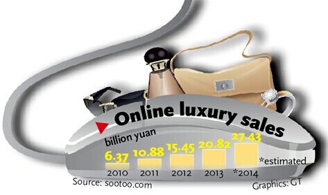 However, it seems that more price-sensitive Chinese consumers have been buying luxury goods online in recent years. A report by research firm SooToo.com Inc estimated in December that the sales volumes of China's luxury online shopping platforms would reach 27.43 billion yuan ($4.4 billion) in 2014, up 31.7 percent year-on-year.