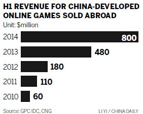 But with a growing number of Chinese gaming companies going overseas, they have become an important driving force for the country's economy. Sales revenue of online games developed in China and sold abroad reached $800 million, up 66.7 percent year-on-year, according to the China Gaming Industry Report released last week during the opening ceremony of the 2014 China Digital Entertainment Expo & Conference in Shanghai.