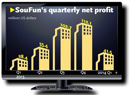 In the first quarter of 2014, despite a cooling real estate market, SouFun's revenue from housing information listing services surged by 57.1 percent year-on-year to $42.1 million, according to the US-listed company's first quarter earnings report released on May 7. The company is scheduled to release second-quarter earnings on Thursday.