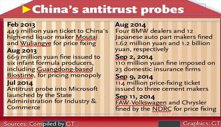 The antitrust probes into foreign auto companies and high-tech companies, such as Qualcomm and Microsoft, have recently raised concerns among some observers that Chinese regulators will impose stricter fines on foreign firms compared with the domestic companies.