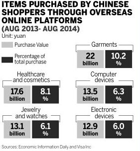 Meanwhile, Chinese shoppers spent 3.1 trillion yuan through online shopping in 2013. American retailers' websites were the most popular among Chinese online shoppers, while South Korean websites transactions were below average, said the report.
