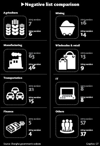 In July, the Shanghai municipal government cut the "negative list" by almost one-third to 139 items, from 190 items in the 2013.