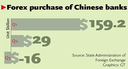 Chinese banks had a deficit in foreign exchange transactions of $16 billion in the third quarter of this year, indicating a trend of foreign capital outflow, after recording a net inflow of $159.2 billion in the first quarter and $29 billion in the second quarter, the SAFE's latest data showed.