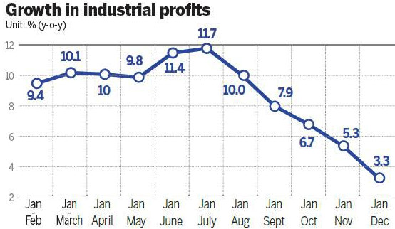 Sharp drops in factory-gate prices and raw materials costs drove profits down, said He Ping, an economist at the NBS. The oil and coal industries accounted for about 80 percent of the entire industrial sector's profit decline, said He.