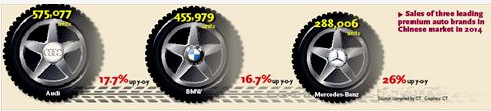 The three German brands account for approximately 70 percent of China's premium market, according to experts.