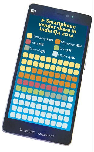 Claiming sales of 1 million smartphones in India via online retail partner Flipkart within five months since making its debut in the market in July, Xiaomi was ranked as the fifth largest smartphone vendor in India during the fourth quarter of 2014, according to IDC, lagging behind the leader South Korea's Samsung and local brands such as Micromax and Lava.