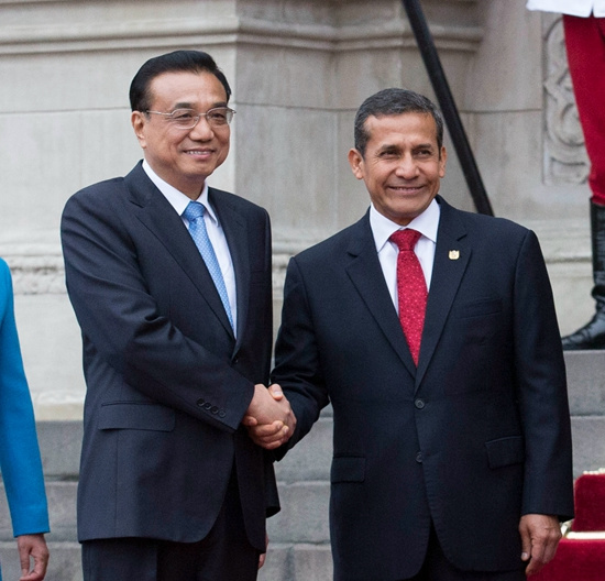 After a welcoming ceremony with cavalries and a military band, Chinese Premier Li Keqiang and Peru President Ollanta Humala witnessed the signing of 10 agreements on investment, transportation, hydropower development, agriculture and education that followed a two-hour meeting.
