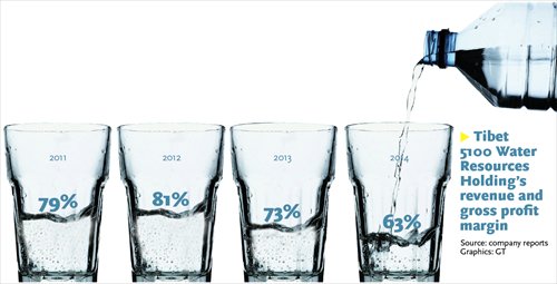 Some high-end water brands' gross margins can be almost as high as those of domestic liquor brands, said media reports. Tibet 5100's gross margin in 2014 was 63 percent, Wuliangye Yibin Co's liquor business saw its gross margin in 2014 reach 75.5 percent.