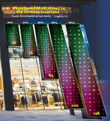 MUJI operates 128 stores in the Chinese mainland, and these outlets are seen as a driver of earnings in the overall overseas business, Masaaki Kanai, president of the Ryohin Keikaku Co, said in the company's fiscal 2014 statements. The fiscal year ends in February.