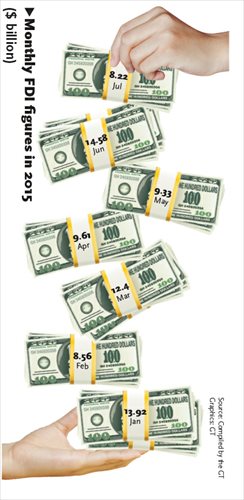 "The boom in China's stock market earlier this year attracted FDI inflows into the financial services sector," said Liu Xuezhi, an analyst with Bank of Communications.