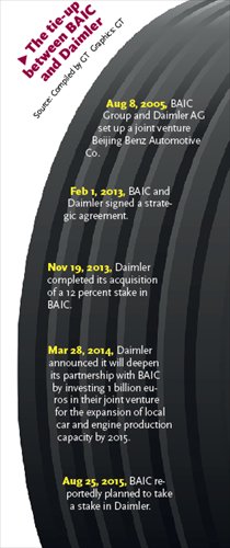 The possible purchase of a stake in Daimler is also seen as part of a broader tie-up with the German automaker that could help BAIC expand its sales channels overseas, he noted.
