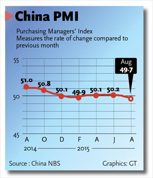 "The Chinese economy may be facing downward pressure, but some temporary factors, such as storms and air pollution control ahead of the parade in Beijing, have affected the latest PMI reading to a certain extent," Xi Junyang, a professor at the Shanghai University of Finance and Economics, told the Global Times.