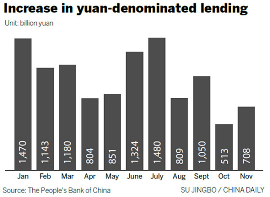 New loans grew by 708 billion yuan ($110 billion) in November, compared to a 513 billion yuan increase in October.
