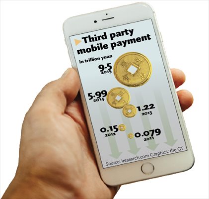 Data from the China Internet Network Information Center showed that by the end of 2015, a total of 358 million Chinese users paid bills via smartphones, up 64.5 percent year-on-year.