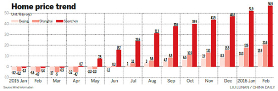 New-home prices in Beijing increased 12.9 percent in February from a year ago, and that of used homes soared 27.7 percent year-on-year.