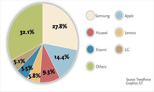 "Apple is facing strong rivalry from China's domestic brands like Huawei and Xiaomi in the Chinese market," said Zhu, adding that these brands, though still targeting a lower-end segment than Apple, are also posing an increasing threat to Apple in the global market.