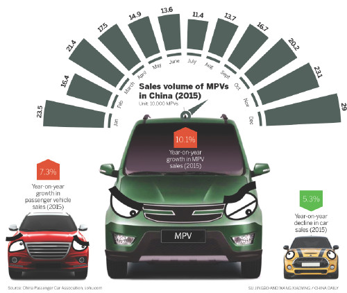 Zeng said the rising demand for logistics and commuting in the lower tier cities and towns, as well as the expected rise in use of MPVs by high-end families in the wake of the second-child policy, are also key reasons.