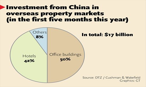 Chinese investments in overseas real estate markets reached $17 billion in the first five months of 2016, already surpassing more than 65 percent of last year's total and making China the second-largest source of global property investments, according to a report released by DTZ/Cushman & Wakefield on Tuesday.