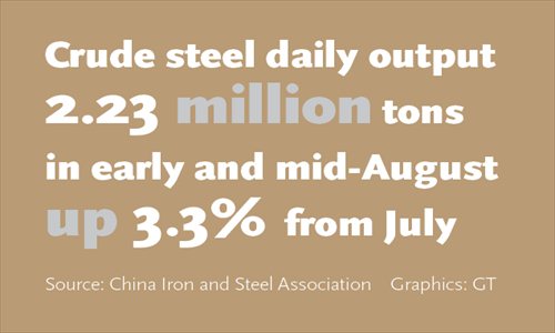 Daily production for the China Iron and Steel Association (CISA)'s member companies amounted to 1.76 million tons in early and mid-August, according to a statement published on the CISA website on Tuesday.
