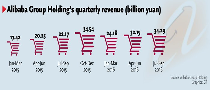 Net income in the quarter ended September 30, 2016 was 12.95 billion yuan ($1.94 billion), up 41 percent year-on-year.