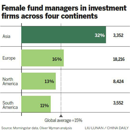 "In China, we have seen more women moving up the ranks in the investment management industry," said Jia Lijun, head of the CFA Institute's China branch, noting that there will be more opportunities for women as China's financial industry matures and continues to develop.