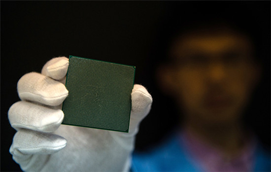 An engineer shows off a Sunway TaihuLight chip. The newly developed supercomputer powered by SW26010 processors is more than twice as powerful as the previous No 1 on June 20, 2016.(Photo/Xinhua)