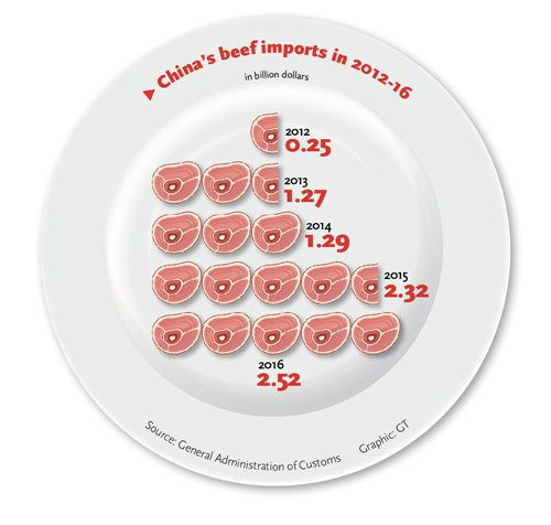 "During recent years, China's beef market has seen several booms caused by imports from some world-class beef production countries. Neither Australian nor Brazilian beef had a damaging impact on the Chinese beef market, and the upcoming U.S. beef inflow won't be that much of a problem," the company told the Global Times on Tuesday.