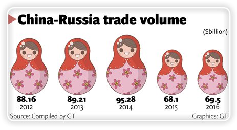 The two countries have come to a new period of cooperation, as the bilateral trade volume cannot fully represent the potential of China-Russia ties, Ma Youjun, director of the Russia Institute at Heilongjiang Provincial Academy of Social Sciences, told the Global Times on Tuesday. Northeast China's Heilongjiang Province accounted for about 13.2 percent of the country's total trade volume with Russia in 2016.